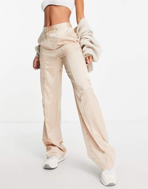 Topshop – Kremowe satynowe spodnie z szerokimi nogawkami w prążki