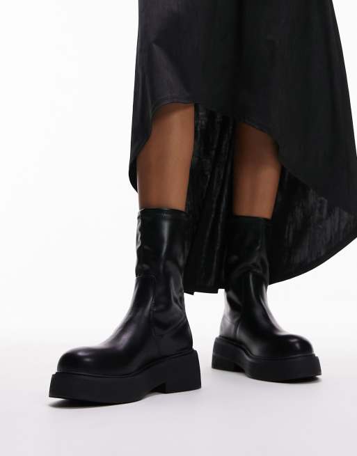 Topshop – Laura – Czarne botki do kostki z elastyczną cholewką i teksturowaną podeszwą