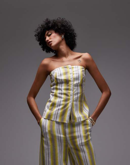 Topshop – Lniany top z dekoltem bandeau, w żółte paski, część zestawu