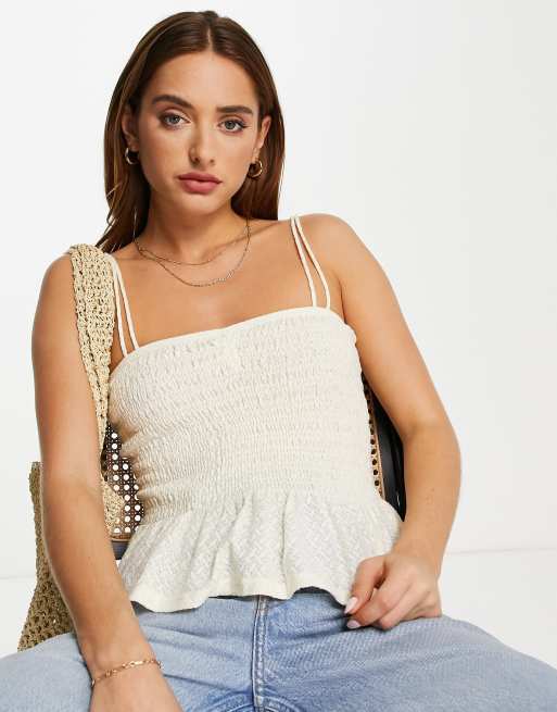 Topshop – Marszczony top na ramiączkach w kolorze mlecznym