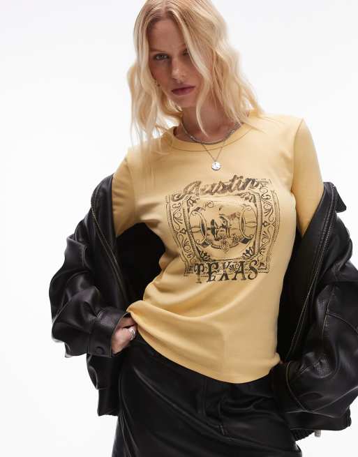 Topshop – Maślany top z długimi rękawami i grafiką z napisem „Austin Texas”