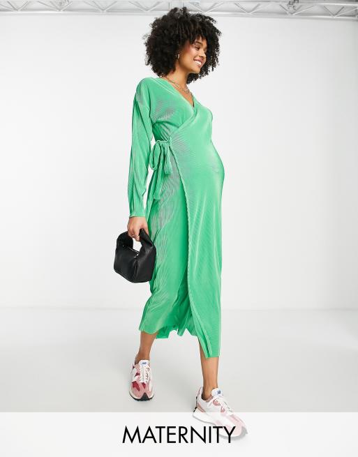 Topshop Maternity – Zielona plisowana kopertowa sukienka