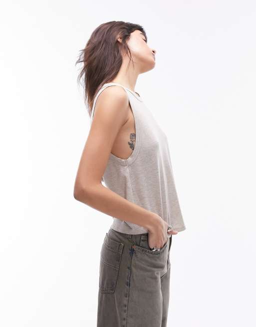 Topshop – Miękki szarobeżowy top o luźnym kroju