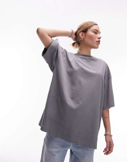 Topshop – Niebieski sprany T-shirt oversize z obniżoną linią ramion