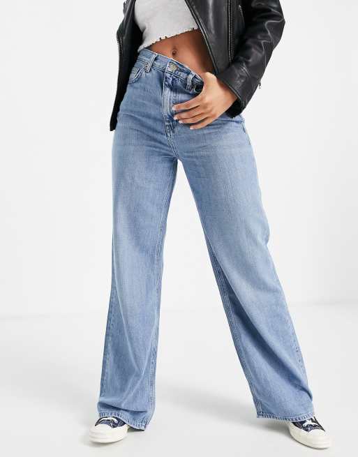Topshop – Niebieskie jeansy z szerokimi nogawkami