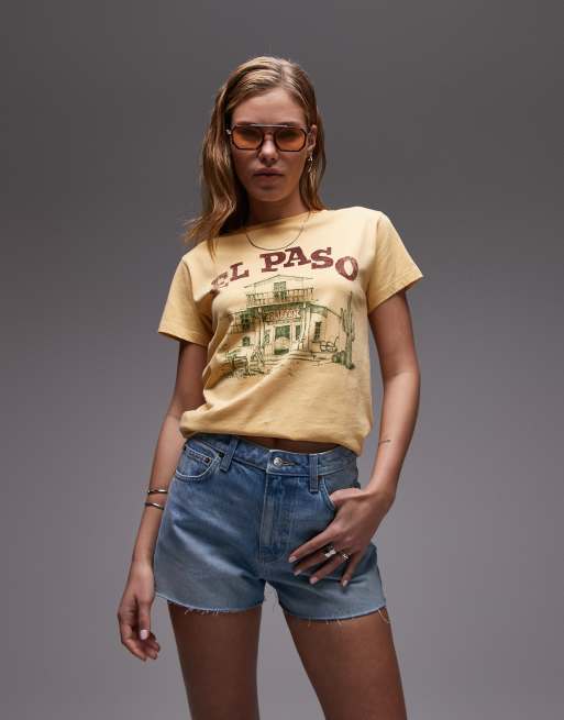 Topshop – Niebieskie trapezowe szorty jeansowe z efektem wybielenia