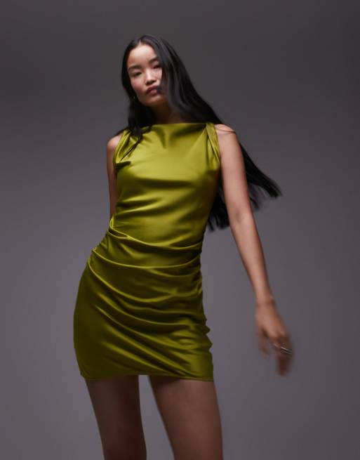 Topshop – Oliwkowa sukienka mini na skręconych ramiączkach