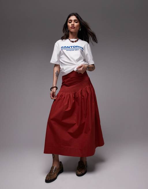 Topshop – Pełna popelinowa spódnica z zaszewkami w kolorze czerwonym