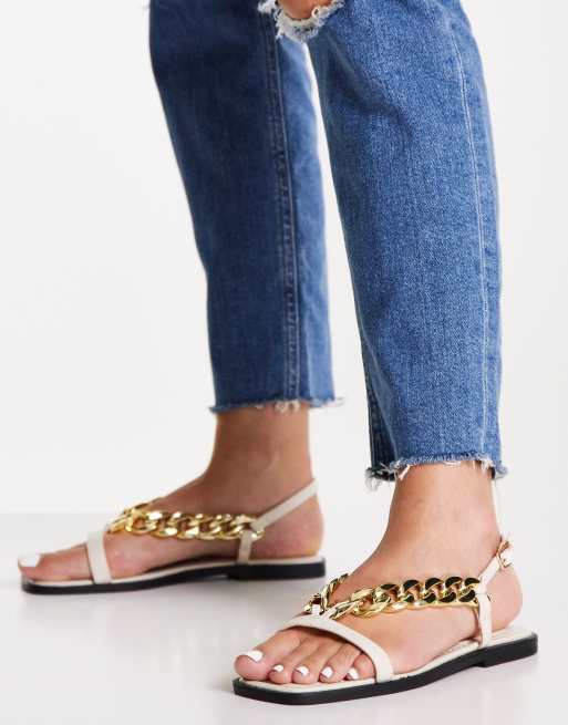 Topshop – Penny – Sandały z ozdobnym łańcuszkiem w kolorze złamanej bieli