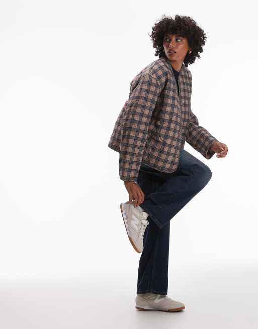 Topshop – Pikowana kurtka w kolorową kratkę
