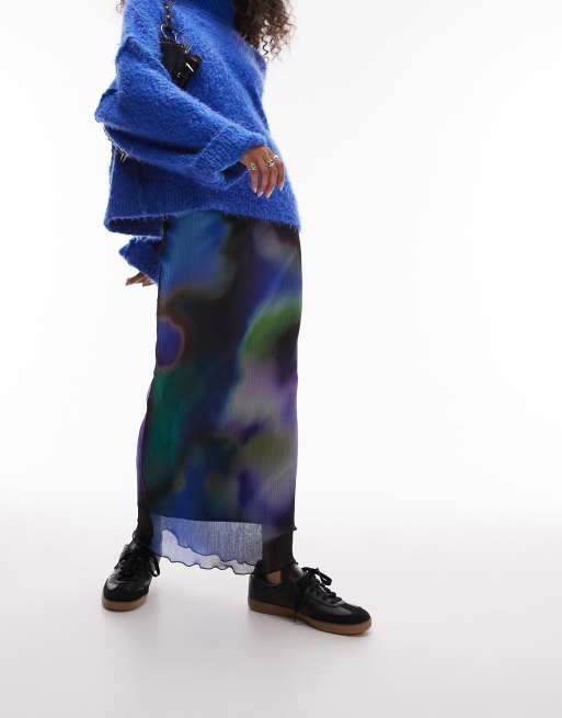 Topshop – Plisowana spódnica midi w rozmyty fioletowy wzór