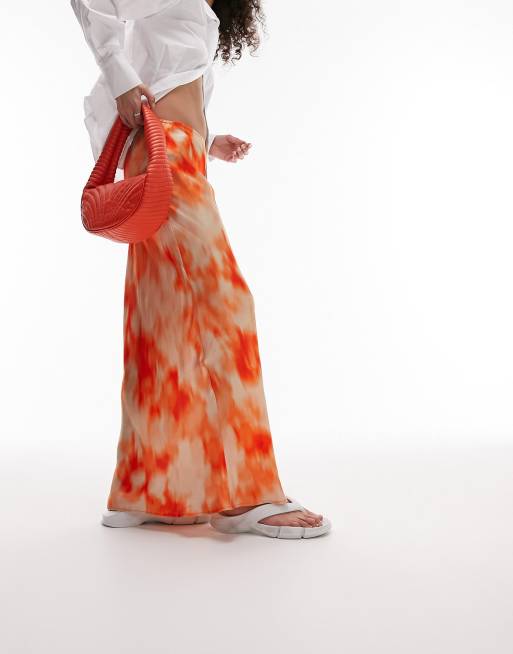 Topshop – Pomarańczowa spódnica maxi ze wzorem tie-dye
