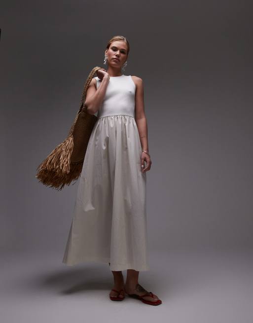 Topshop – Popelinowa sukienka maxi w kolorze złamanej bieli