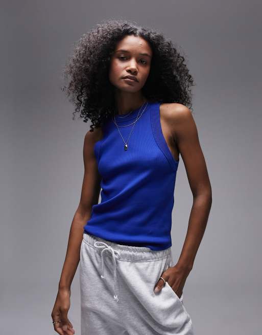 Topshop – Prążkowany kobaltowy podkoszulek o fasonie bokserki