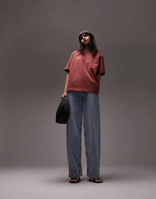 Topshop – Premium Basic – T-shirt w rdzawym kolorze z krótkimi rękawami
