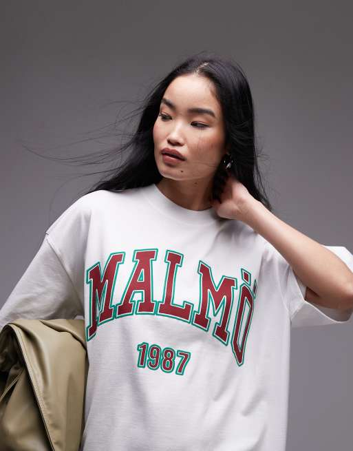 Topshop Premium – Biały T-shirt o fasonie super oversize z napisem „Malmö”