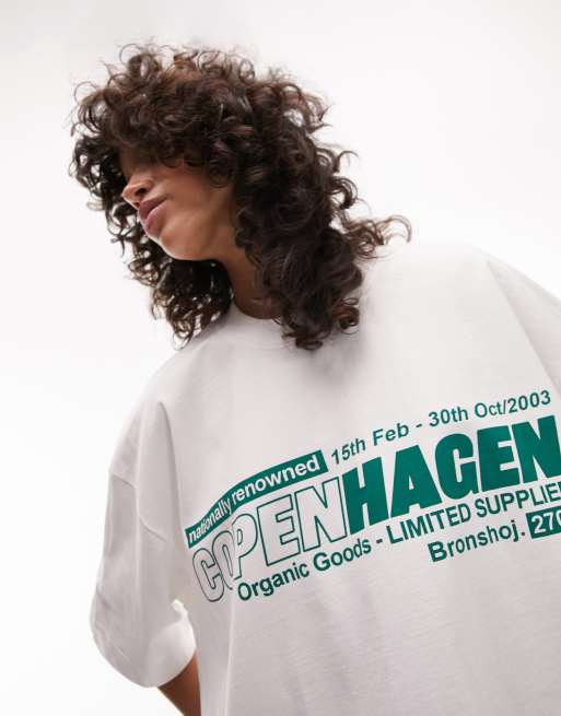 Topshop Premium – Biały T-shirt superoversize z grafiką z napisem „Copenhagen”