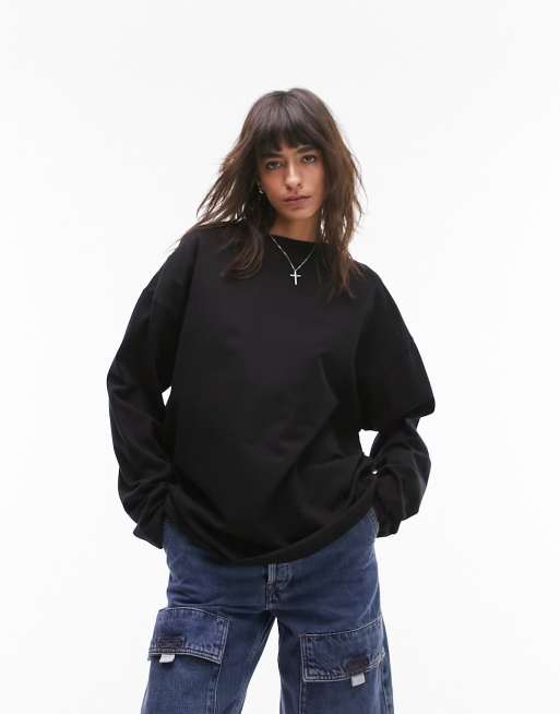 Topshop Premium – Czarny T-shirt oversize z długimi rękawami w stylu skater