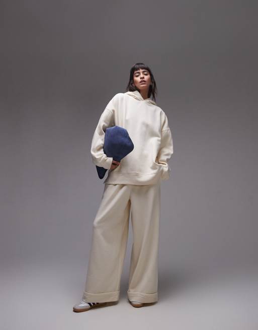Topshop Premium – Joggersy z podwijanymi mankietami w kolorze ecru