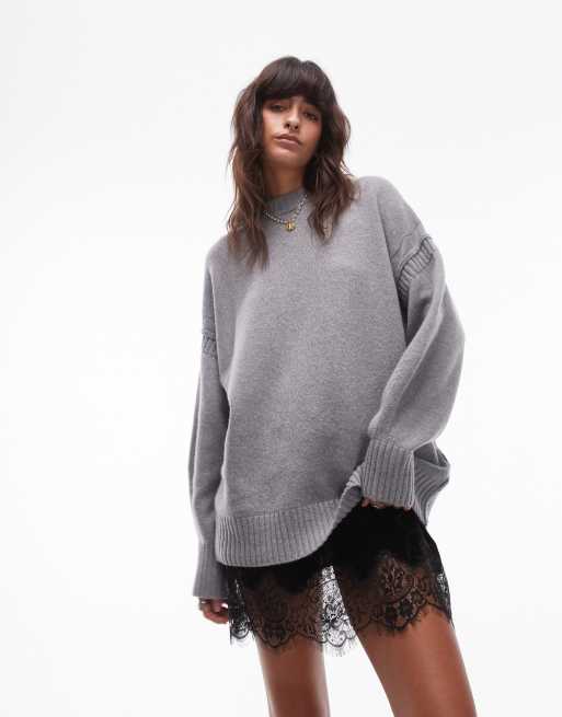 Topshop Premium – Szary sweter oversize z mieszanki wełny z kontrastowymi szwami