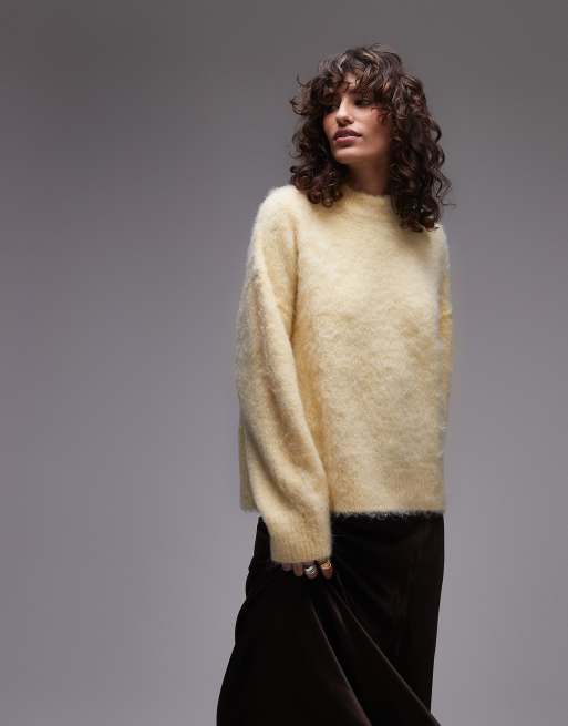 Topshop – Puszysty dzianinowy sweter o luźnym kroju w maślanym kolorze