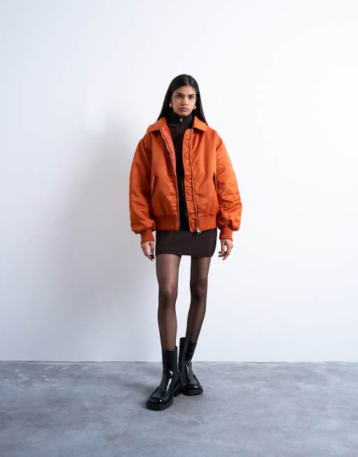 Topshop – Rdzawoczerwona nylonowa kurtka bomberka