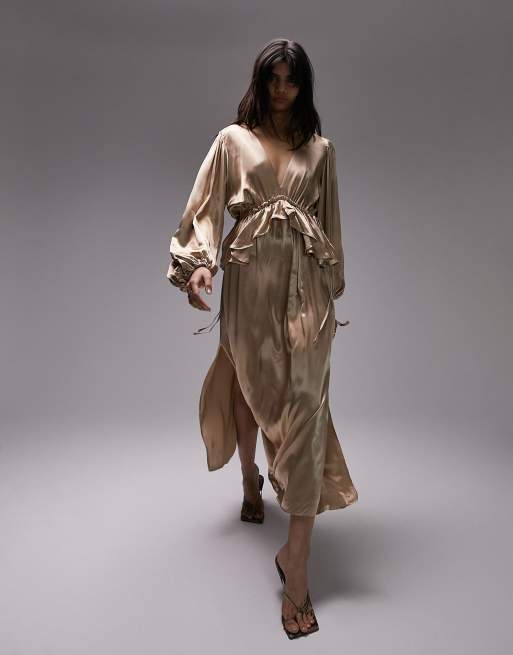 Topshop – Riveria – Złota sukienka z długimi rękawami