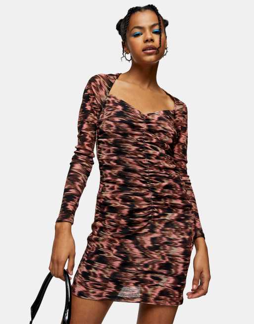 Topshop – Różowa marszczona sukienka mini z efektem tie-dye