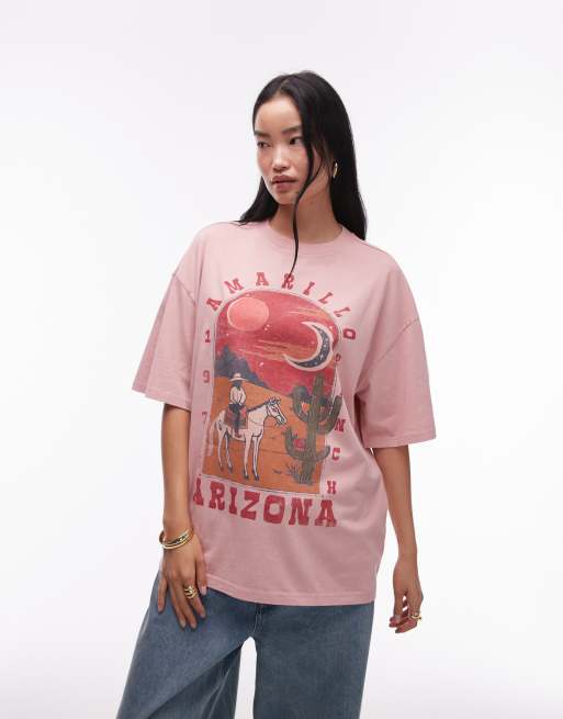 Topshop – Różowy T-shirt oversize z grafiką z napisem Arizona