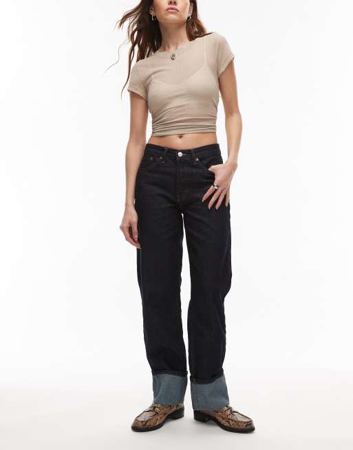 Topshop – Runway – Jeansy o prostym kroju ze średnim stanem w kolorze indygo