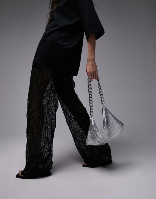 Topshop –Sadie – Luźna srebrna torebka na ramię z kolczugi