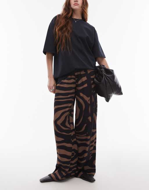 Topshop – Satynowe wiązane w talii spodnie z szerokimi nogawkami w abstrakcyjny wzór
