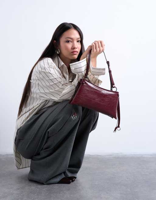 Topshop – Saxon – Fakturowana bordowa torebka na ramię