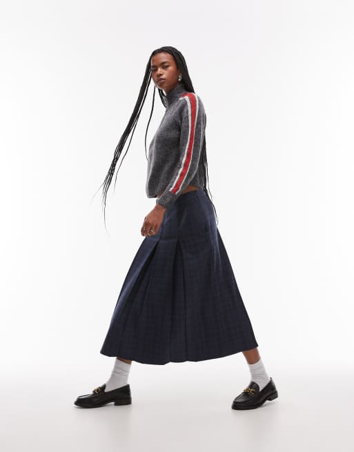 Topshop – Spódnica midi o pudełkowym kroju z zakładkami, w kratę
