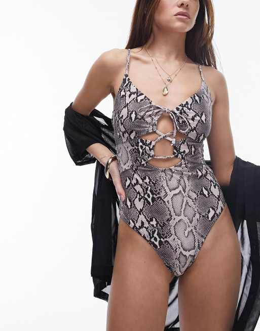 Topshop – Strój kąpielowy z wycięciem w wężowy wzór