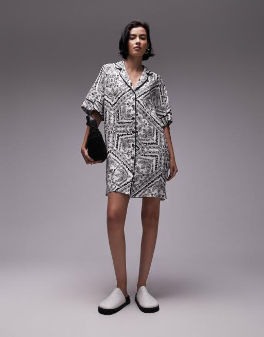 Topshop – Sukienka koszulowa mini w czarno-biały bandanowy wzór