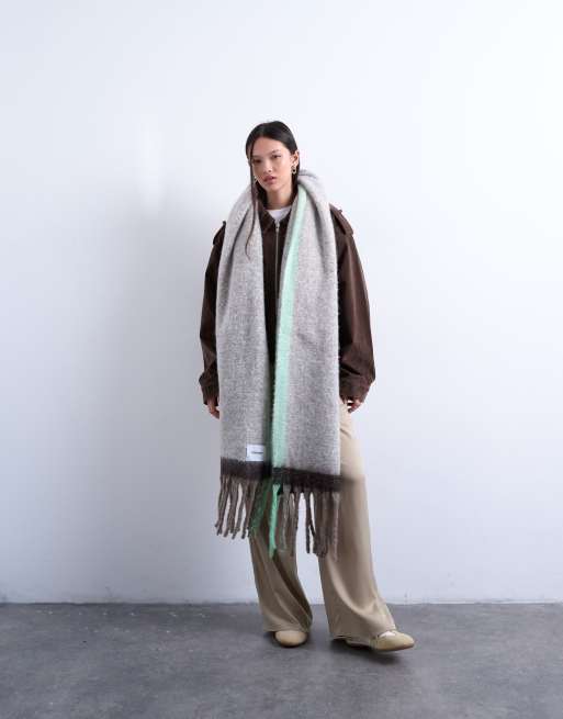 Topshop – Sydney – Szeroki szalik w czekoladowym i miętowym kolorze