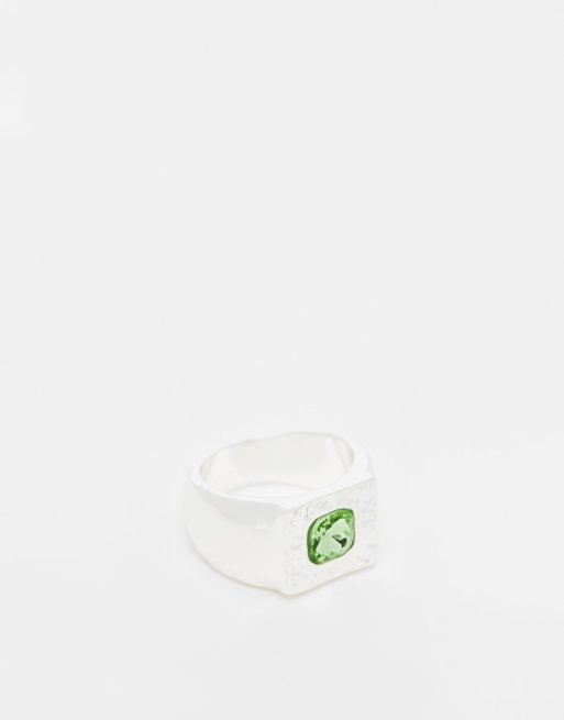 Topshop – Sygnet w odcieniu srebra z zielonym kamieniem