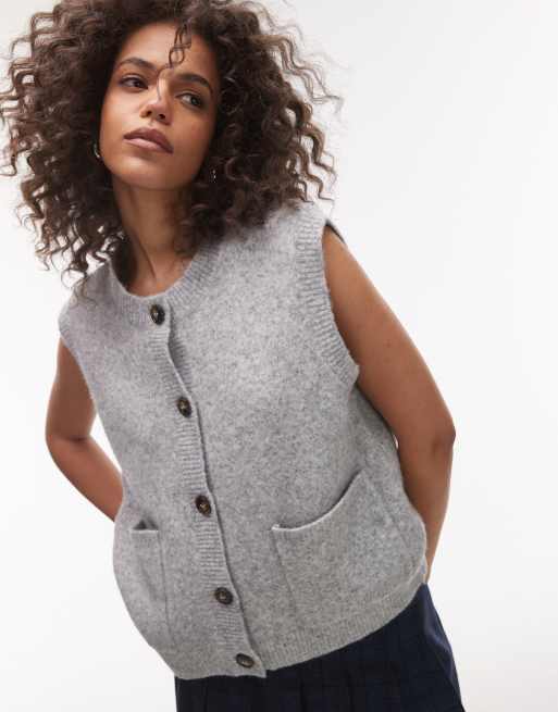 Topshop – Szara dzianinowa kamizelka oversize z okrągłym dekoltem i kieszeniami