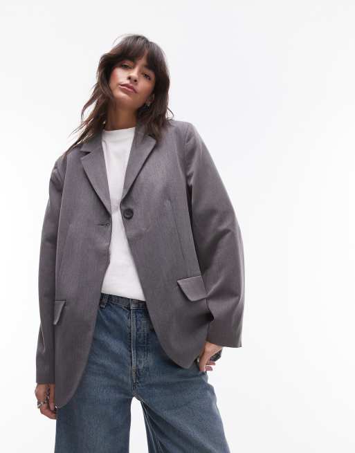 Topshop – Szara elegancka marynarka zapinana na jeden guzik