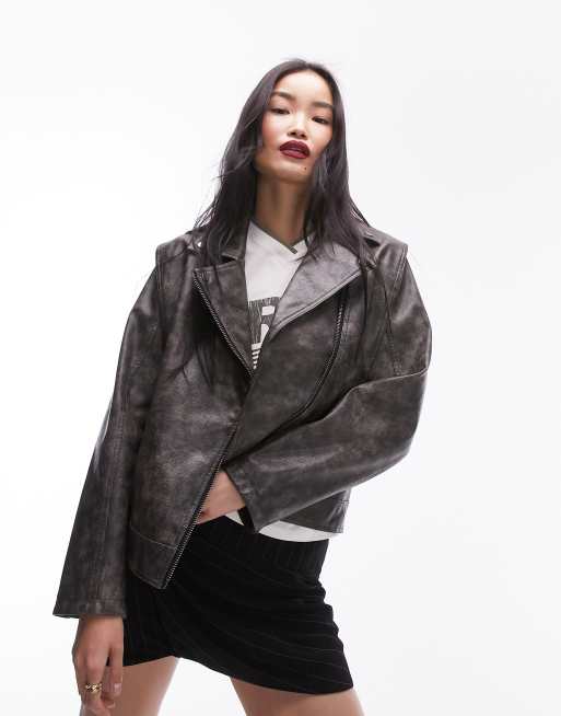 Topshop – Szara kurtka typu biker z imitacji skóry