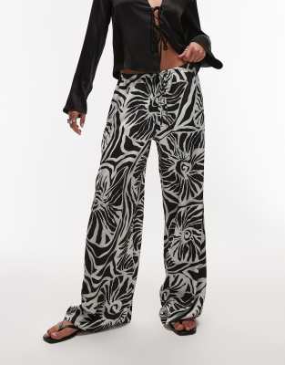 Topshop – Szare satynowe spodnie ściągane na sznurek w abstrakcyjny wzór w muszle