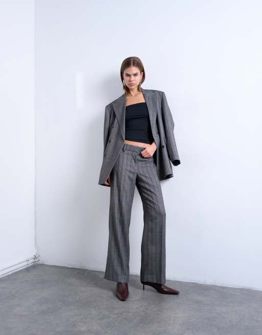 Topshop – Szare spodnie o bardzo luźnym kroju w paski w jodełkę, część zestawu