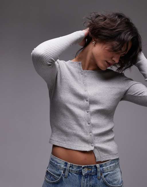 Topshop – Szary melanżowy asymetryczny kardigan z długimi rękawami