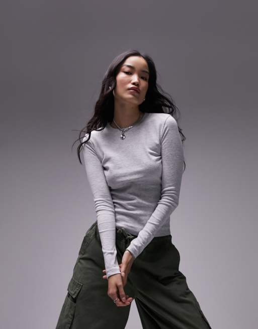Topshop – Szary melanżowy T-shirt z długimi rękawami