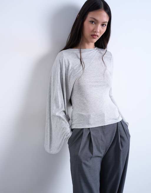 Topshop – Szary melanżowy top z długim rękawem i peleryną