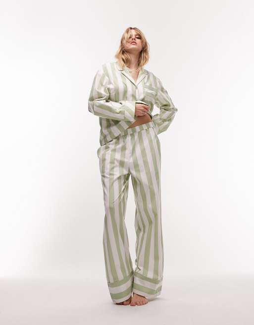 Topshop – Szałwiowa bawełniana piżama w paski: koszula i spodnie