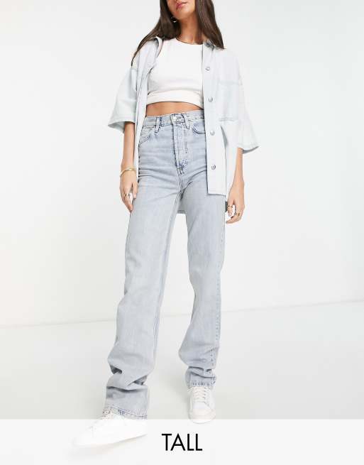 Topshop Tall – Kort – Jeansy o prostym kroju z efektem wybielenia