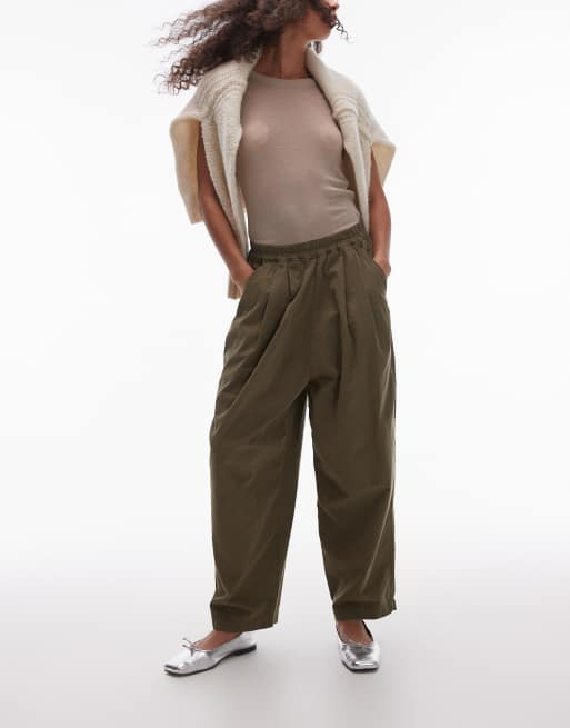 Topshop – Wciągane plisowane spodnie z balonowymi nogawkami w kolorze khaki