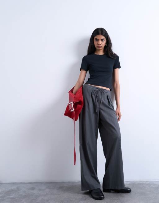Topshop – Wiązane w talii szare joggersy o fasonie bokserek